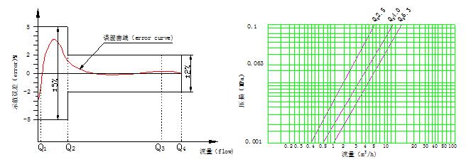示值誤差限與流量曲線FLOW-ERROR CURVE 壓力損失曲線 Pressure loss curve